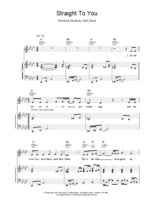 Download or print Nick Cave Straight To You sheet music, chords and digital score arranged for Guitar Chords/Lyrics. This Rock score includes 2 page(s).