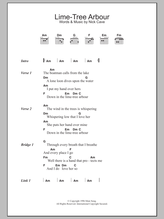 Download or print Nick Cave & The Bad Seeds Lime-Tree Arbour sheet music, chords and digital score arranged for Guitar Chords/Lyrics. This Pop score includes 2 page(s).
