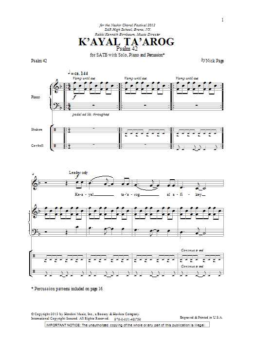 Download or print Nick Page K'Ayal Ta'arog sheet music, chords and digital score arranged for SSA Choir. This Concert score includes 14 page(s).