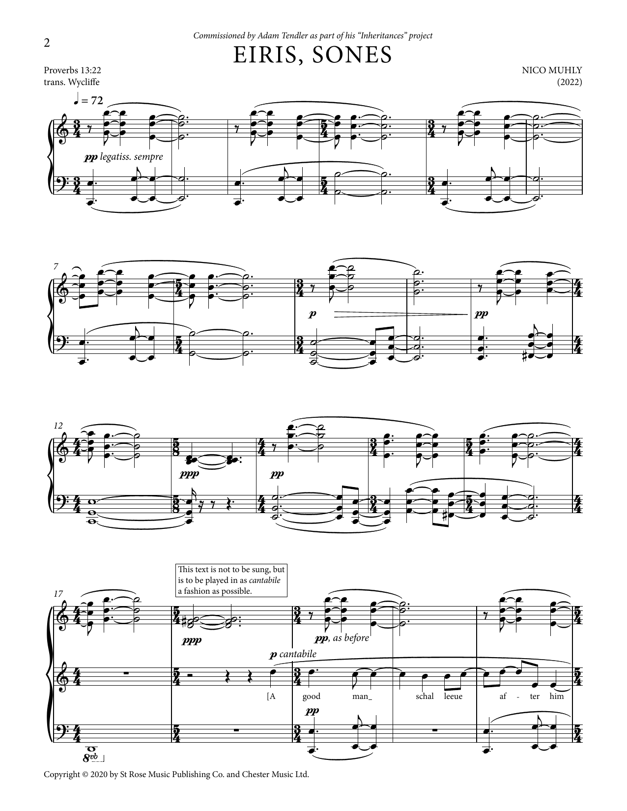 Download or print Nico Muhly Eiris, Sones sheet music, chords and digital score arranged for Piano Solo. This Concert score includes 4 page(s).