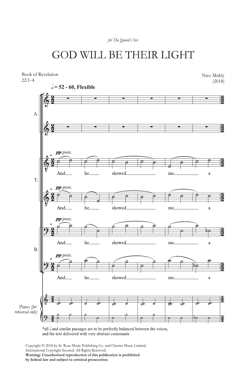 This composition is beautifuly arranged for Choir includes 18 page(s). It is performed by Nico Muhly. The style of the score is 'Classical'. Catalog SKU number of the notation is 509454.