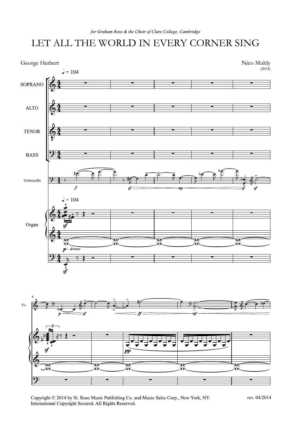 Download or print Nico Muhly Let All The World In Every Corner Sing sheet music, chords and digital score arranged for SATB Choir. This Classical score includes 13 page(s).
