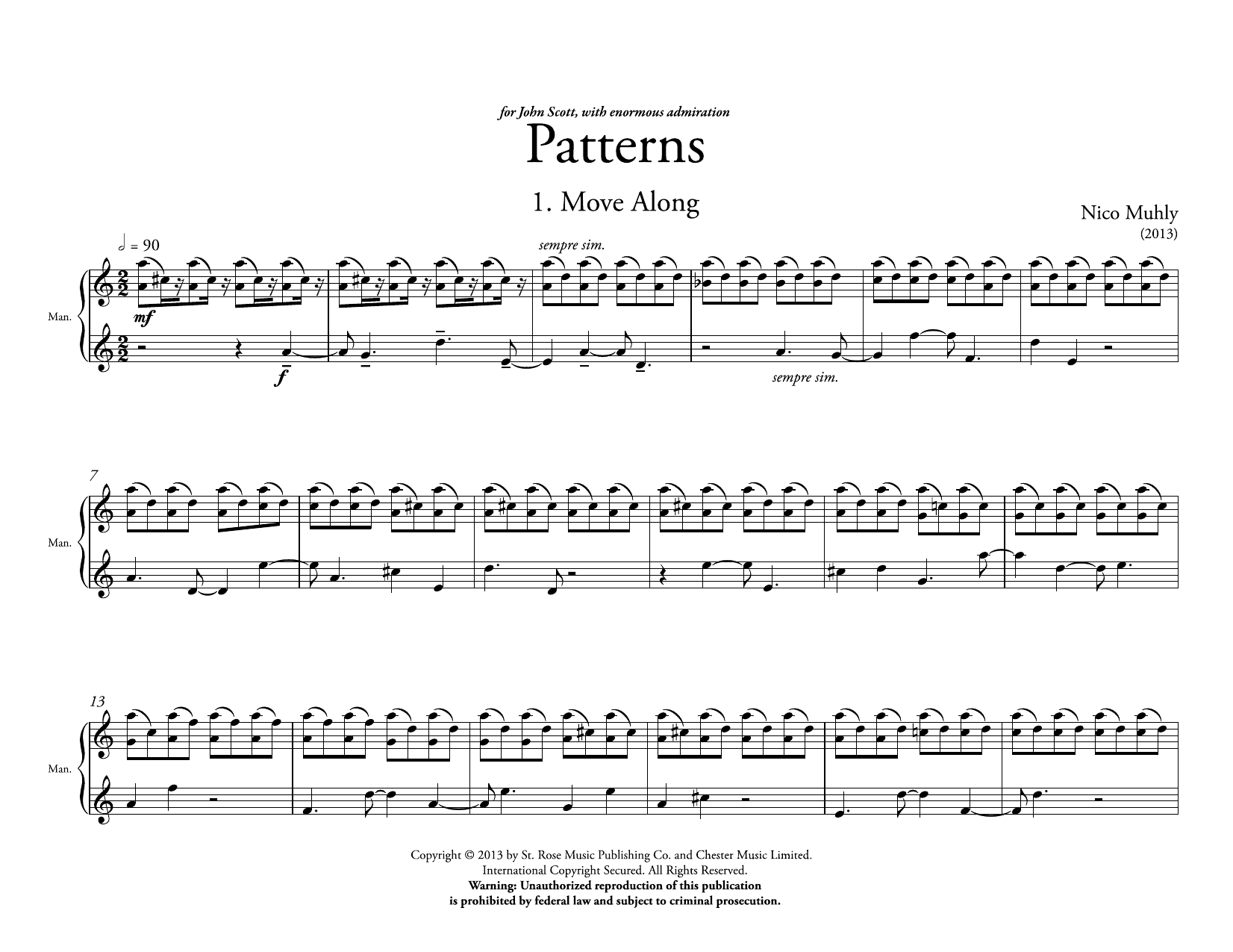 Download or print Nico Muhly Patterns sheet music, chords and digital score arranged for Organ. This Classical score includes 34 page(s).