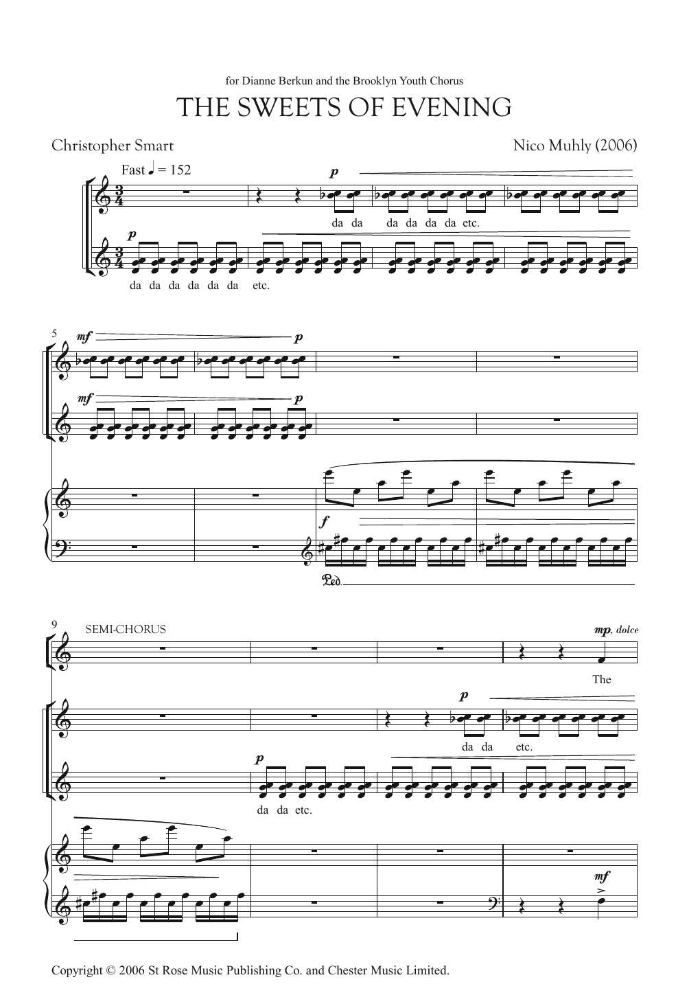 Download or print Nico Muhly The Sweets Of Evening sheet music, chords and digital score arranged for Unison Choir. This Classical score includes 17 page(s).