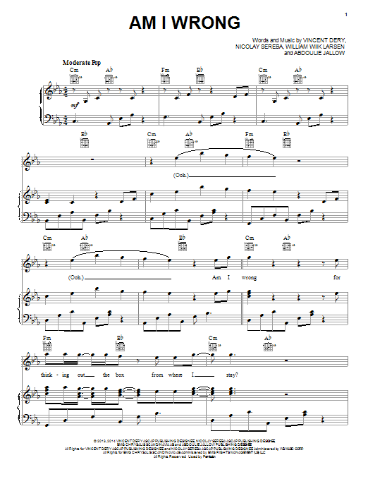 Download or print Nico & Vinz Am I Wrong sheet music, chords and digital score arranged for Easy Piano. This Pop score includes 10 page(s).
