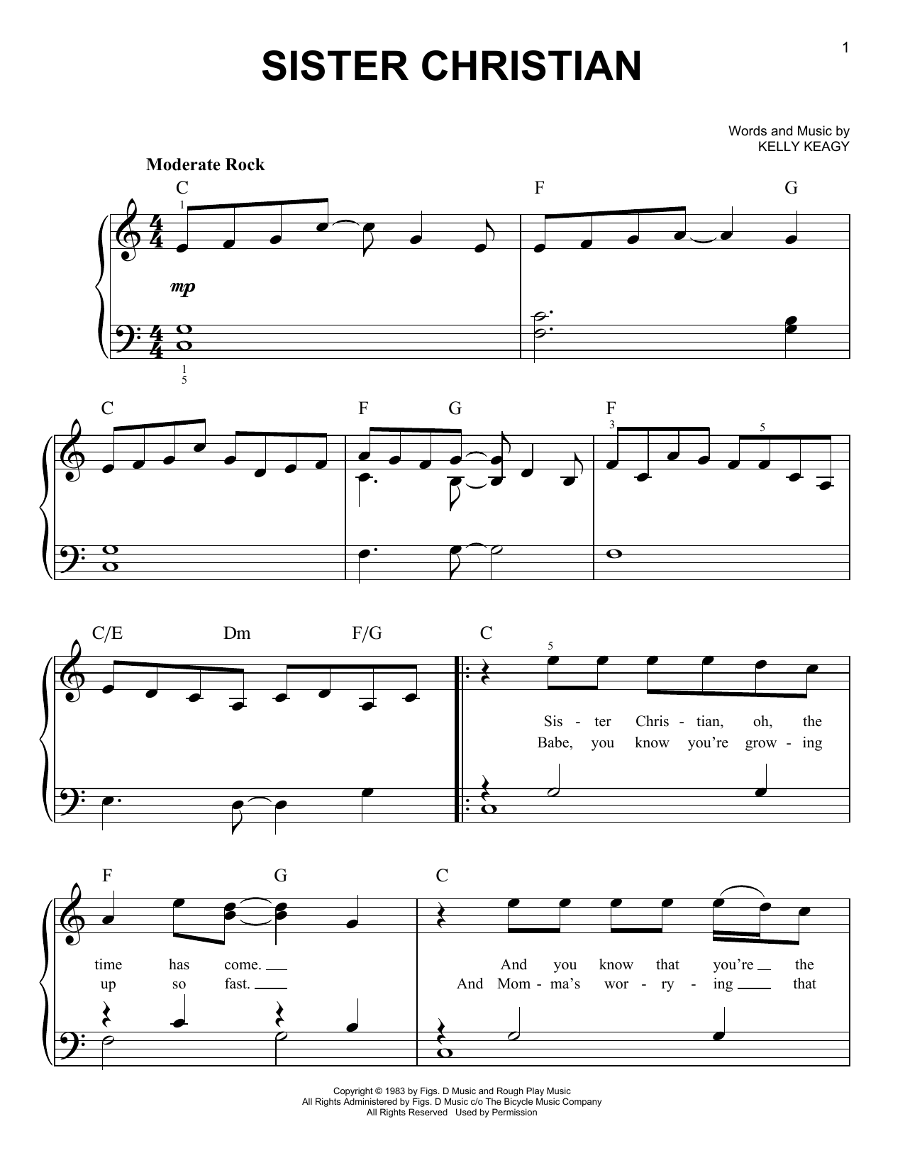 Download or print Night Ranger Sister Christian sheet music, chords and digital score arranged for Lead Sheet / Fake Book. This Pop score includes 1 page(s).