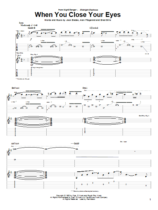 Download or print Night Ranger When You Close Your Eyes sheet music, chords and digital score arranged for Guitar Tab. This Pop score includes 11 page(s).