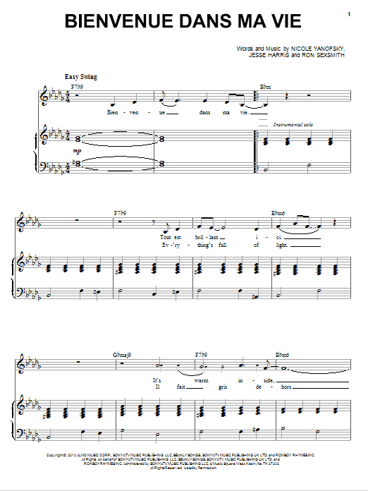 Download or print Nikki Yanofsky Bienvenue Dans Ma Vie sheet music, chords and digital score arranged for Piano & Vocal. This Jazz score includes 4 page(s).