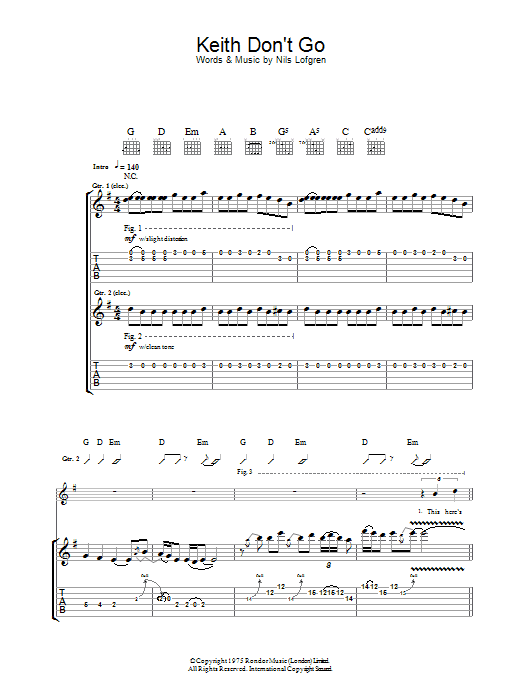 Download or print Nils Lofgren Keith Don't Go sheet music, chords and digital score arranged for Guitar Tab. This Rock score includes 12 page(s).