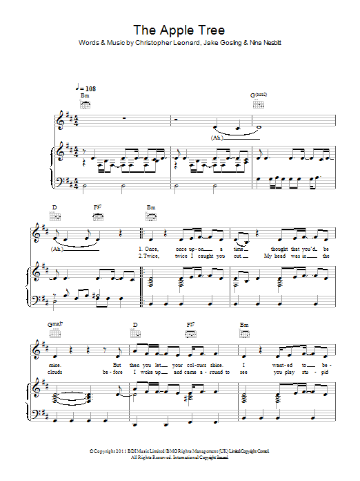 Download or print Nina Nesbitt Apple Tree sheet music, chords and digital score arranged for Piano, Vocal & Guitar Chords. This Folk score includes 4 page(s).