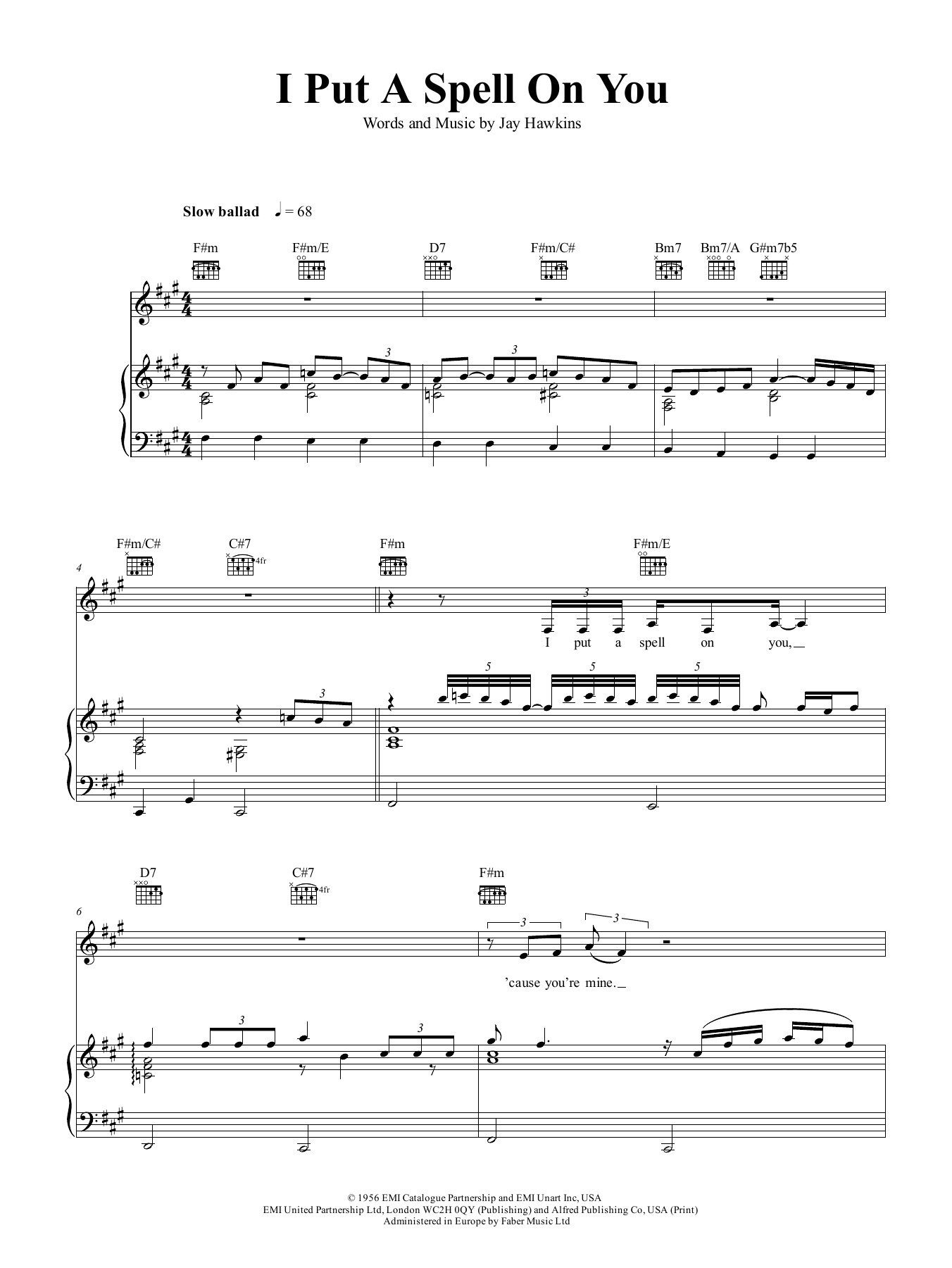Download or print Nina Simone I Put A Spell On You sheet music, chords and digital score arranged for Piano, Vocal & Guitar Chords. This Jazz score includes 5 page(s).