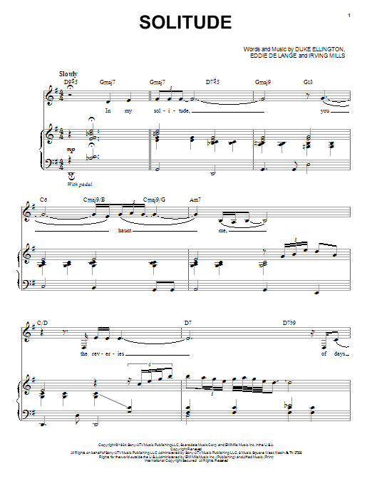 Download or print Nina Simone Solitude sheet music, chords and digital score arranged for Piano & Vocal. This Blues score includes 6 page(s).