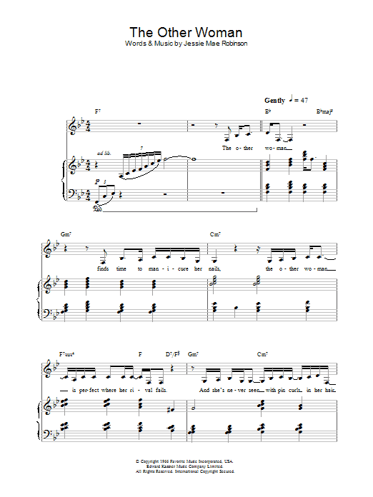 Download or print Nina Simone The Other Woman sheet music, chords and digital score arranged for Piano, Vocal & Guitar Chords (Right-Hand Melody). This Standards score includes 4 page(s).