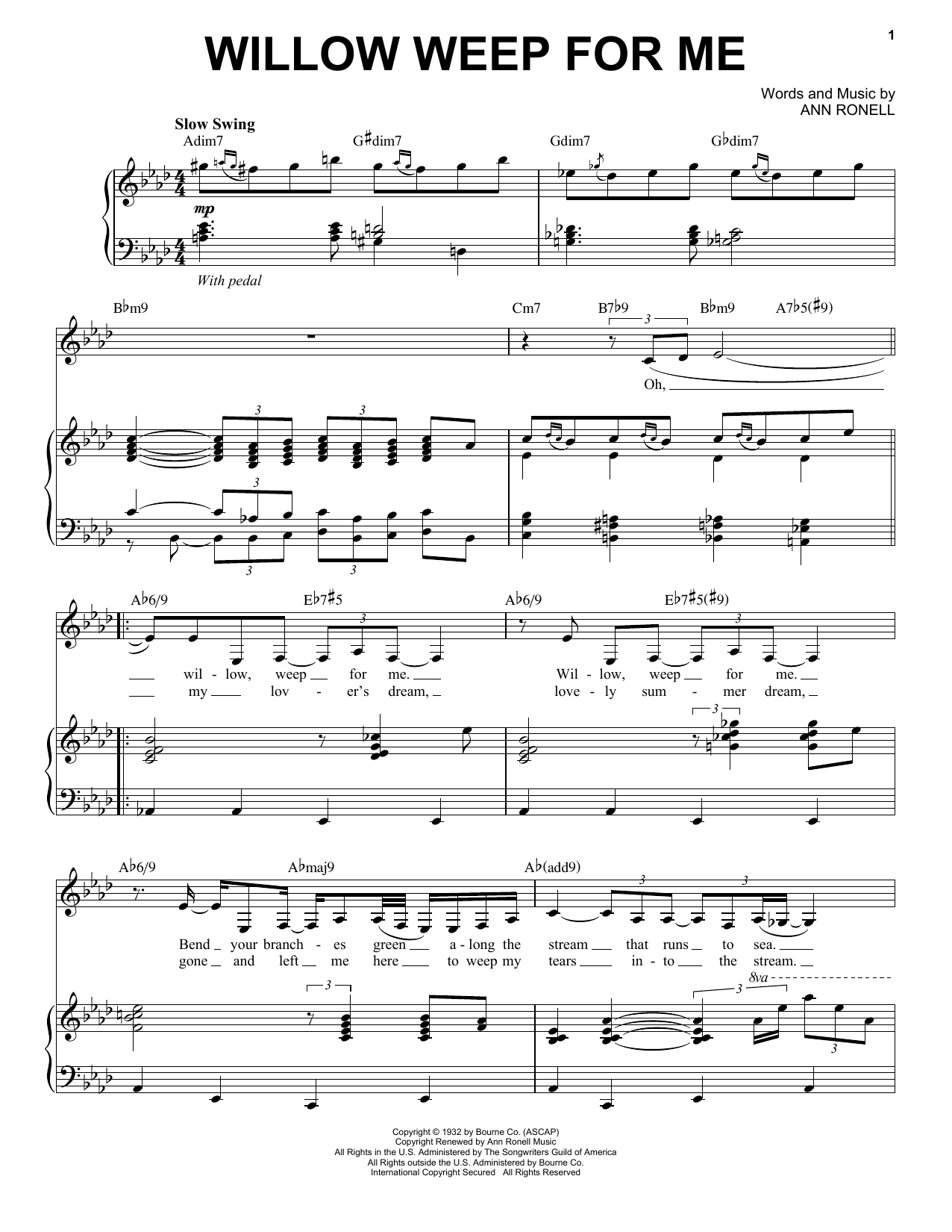 Download or print Nina Simone Willow Weep For Me sheet music, chords and digital score arranged for Piano & Vocal. This Blues score includes 6 page(s).