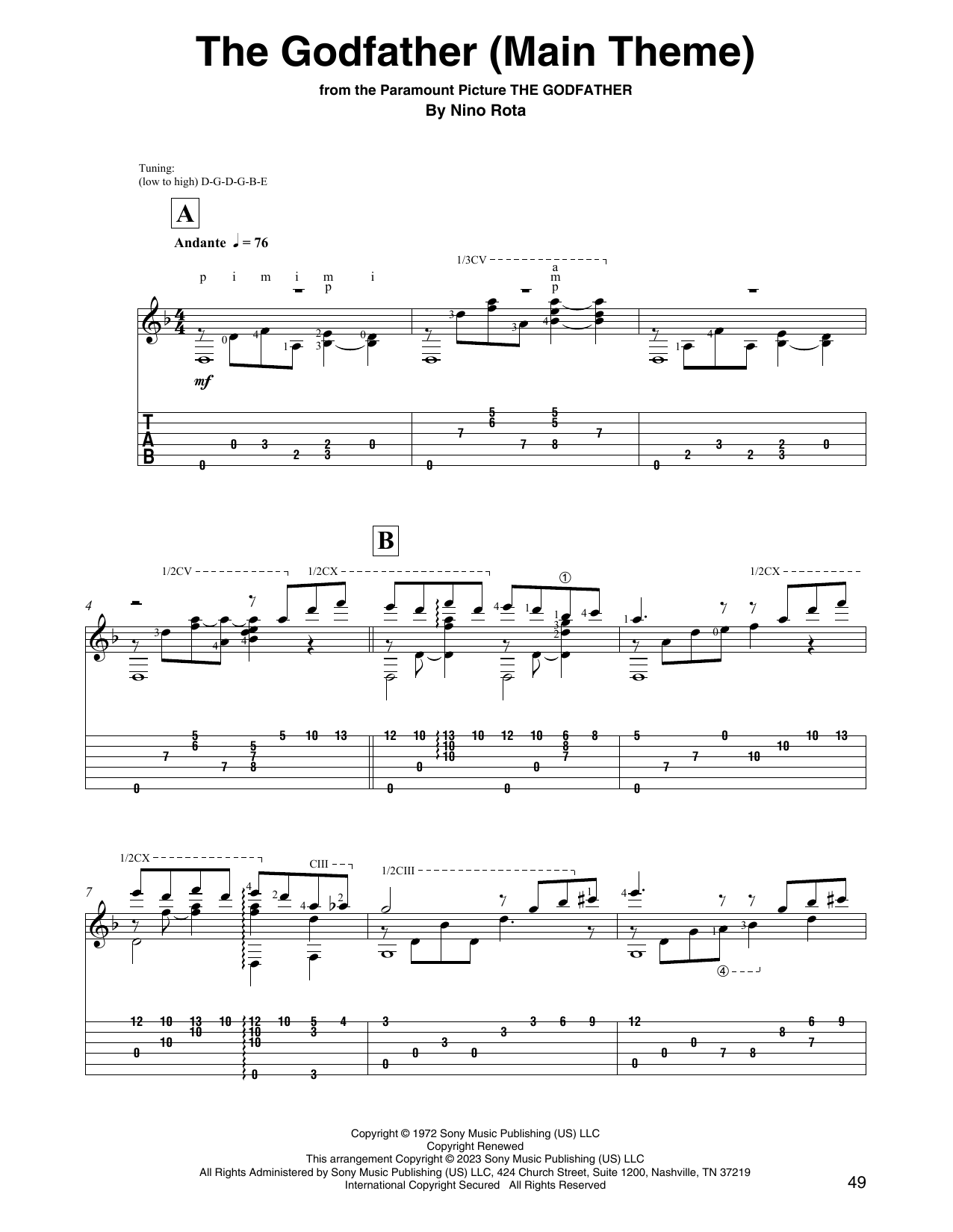This composition is beautifuly arranged for Solo Guitar includes 3 page(s). It is performed by Nino Rota. The style of the score is 'Film/TV'. Catalog SKU number of the notation is 1401297.