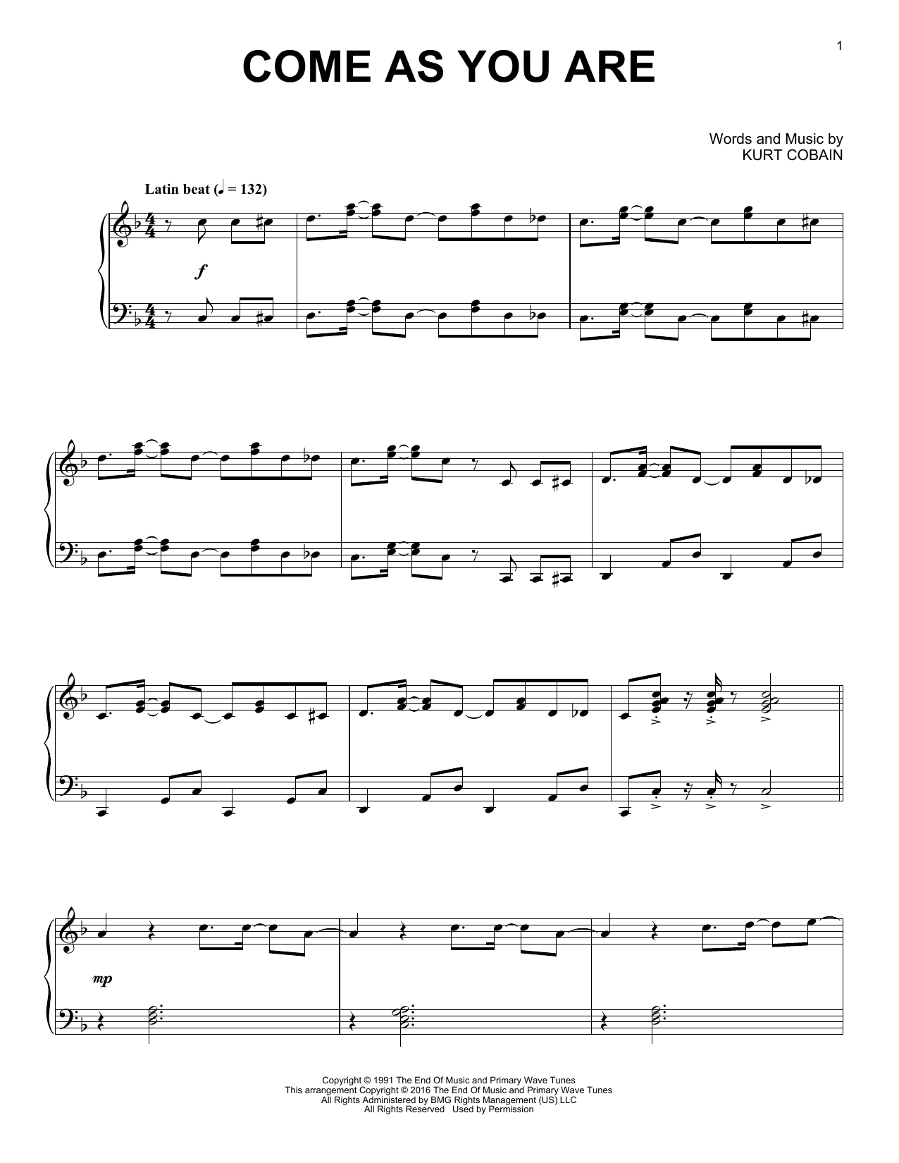 Download or print Nirvana Come As You Are [Jazz version] sheet music, chords and digital score arranged for Piano Solo. This Pop score includes 5 page(s).