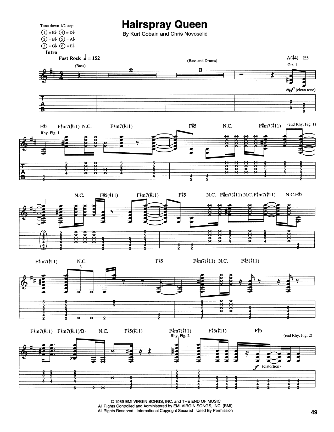 Download or print Nirvana Hairspray Queen sheet music, chords and digital score arranged for Piano, Vocal & Guitar Chords (Right-Hand Melody). This Alternative score includes 7 page(s).
