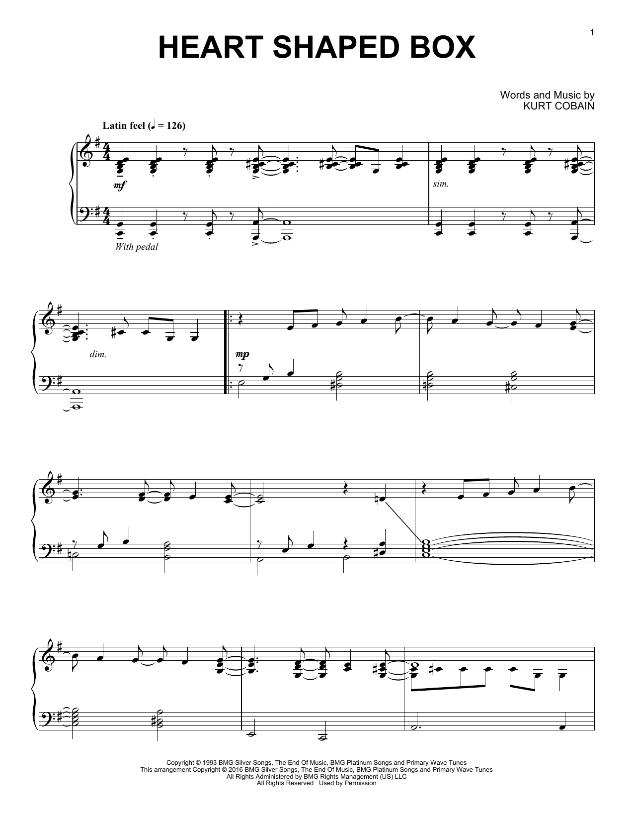 Download or print Nirvana Heart Shaped Box [Jazz version] sheet music, chords and digital score arranged for Piano Solo. This Alternative score includes 5 page(s).