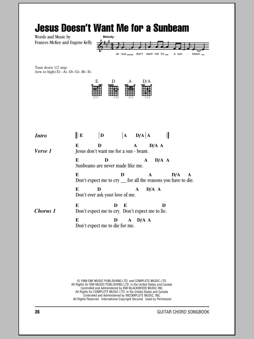 Quick facts Jesus Doesn't Want Me For A Sunbeam about digital sheet music