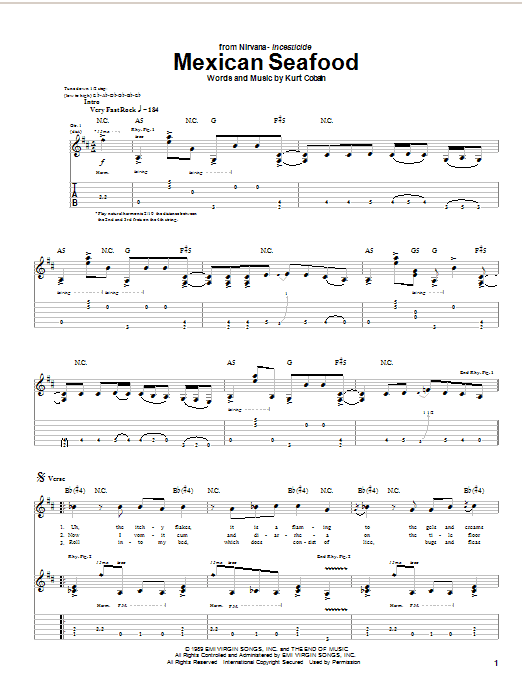 Download or print Nirvana Mexican Seafood sheet music, chords and digital score arranged for Piano, Vocal & Guitar Chords (Right-Hand Melody). This Alternative score includes 3 page(s).