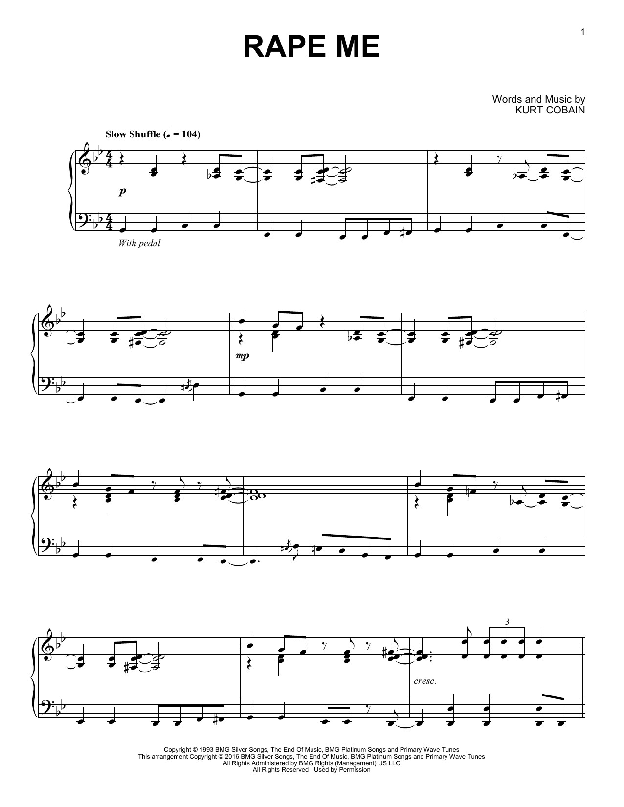 Download or print Nirvana Rape Me [Jazz version] sheet music, chords and digital score arranged for Piano Solo. This Alternative score includes 5 page(s).