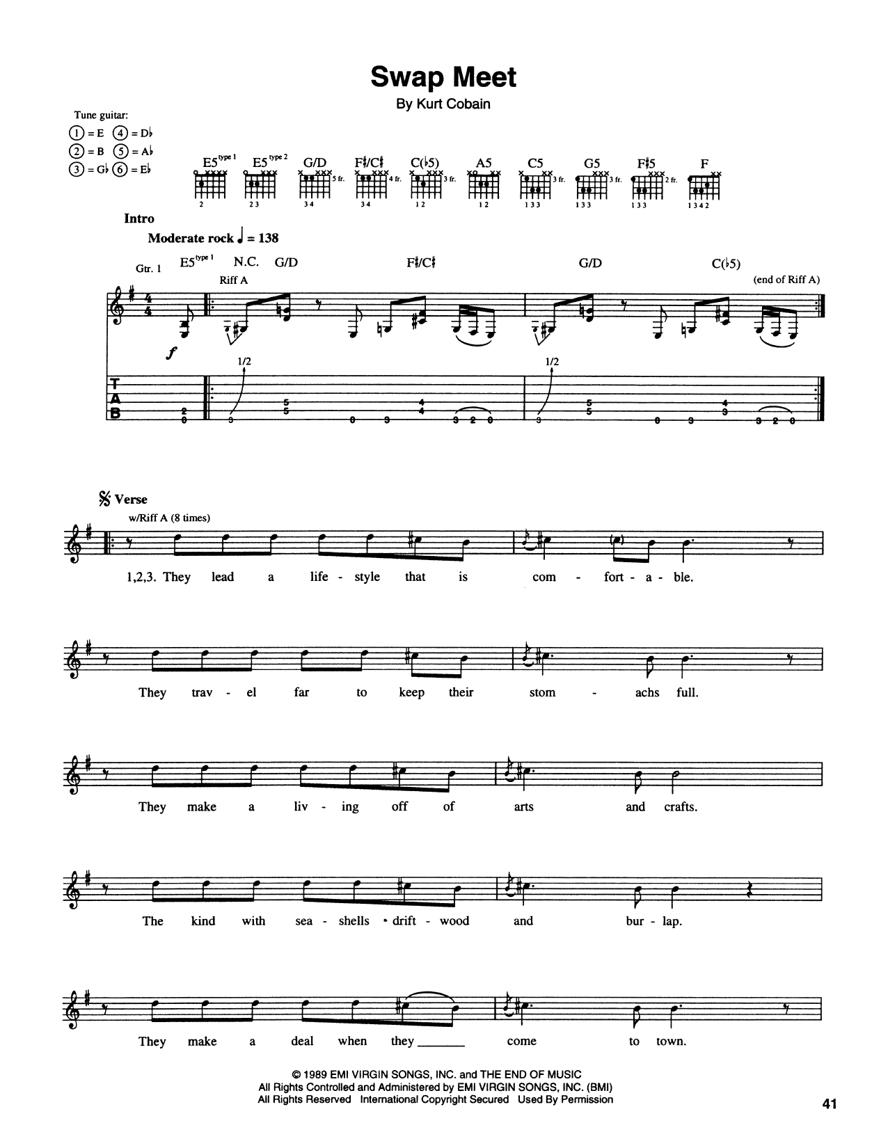 Download or print Nirvana Swap Meet sheet music, chords and digital score arranged for Guitar Tab. This Alternative score includes 4 page(s).