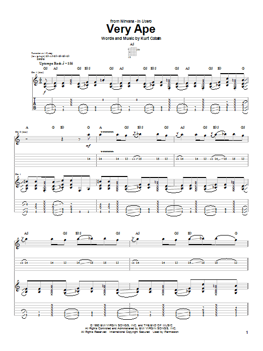Download or print Nirvana Very Ape sheet music, chords and digital score arranged for Piano, Vocal & Guitar Chords (Right-Hand Melody). This Alternative score includes 4 page(s).