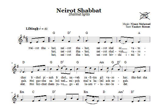 Download or print Nisan Melamed Neirot Shabbat (Shabbat Lights) sheet music, chords and digital score arranged for Lead Sheet / Fake Book. This Traditional score includes 1 page(s).