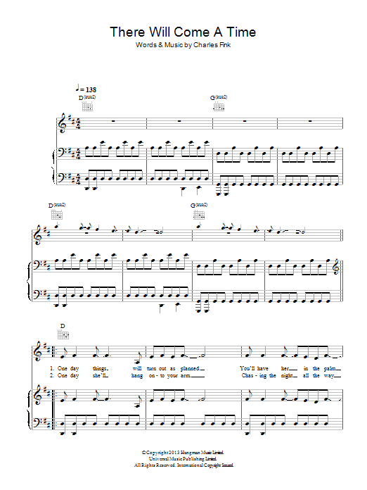 Download or print Noah And The Whale There Will Come A Time sheet music, chords and digital score arranged for Piano, Vocal & Guitar Chords. This Pop score includes 6 page(s).