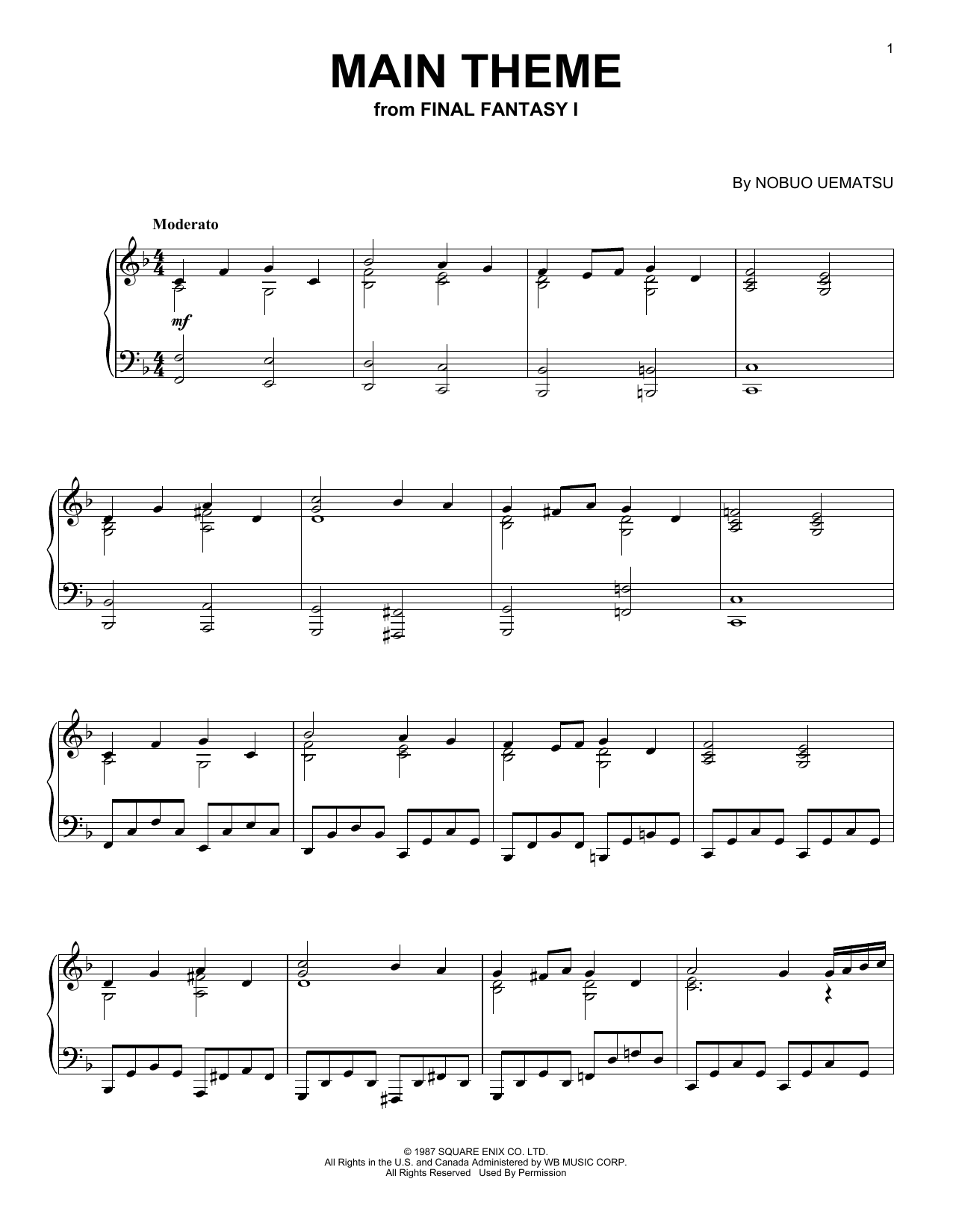 Download or print Nobuo Uematsu Main Theme (from Final Fantasy) sheet music, chords and digital score arranged for Easy Piano. This Video Game score includes 3 page(s).