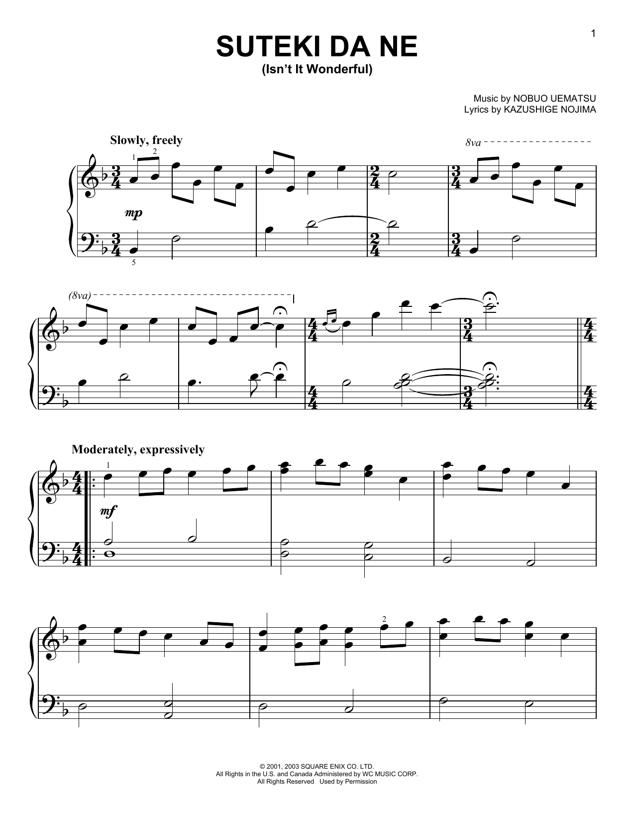 Download or print Nobuo Uematsu Suteki Da Ne (Isn't It Wonderful) (from Final Fantasy X) sheet music, chords and digital score arranged for Easy Piano. This Video Game score includes 4 page(s).