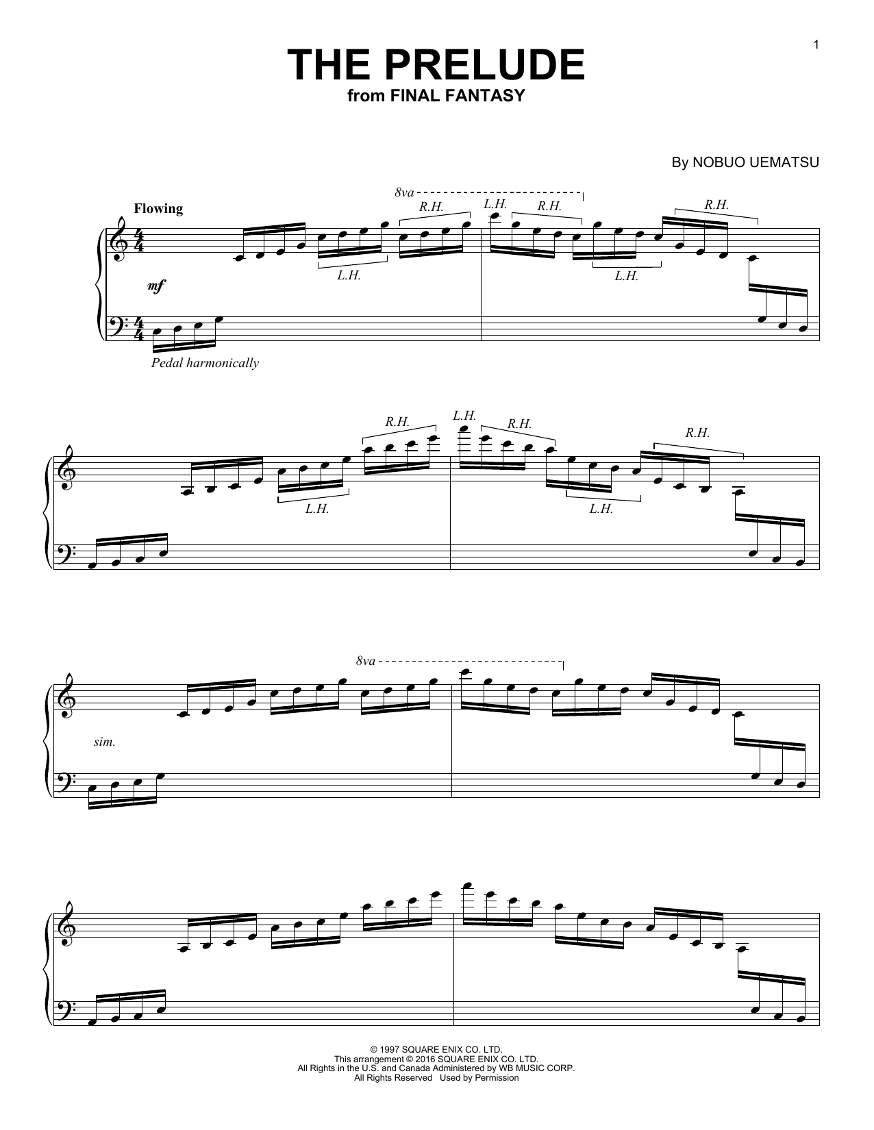 Download or print Nobuo Uematsu The Prelude (from Final Fantasy) sheet music, chords and digital score arranged for Easy Piano. This Video Game score includes 2 page(s).