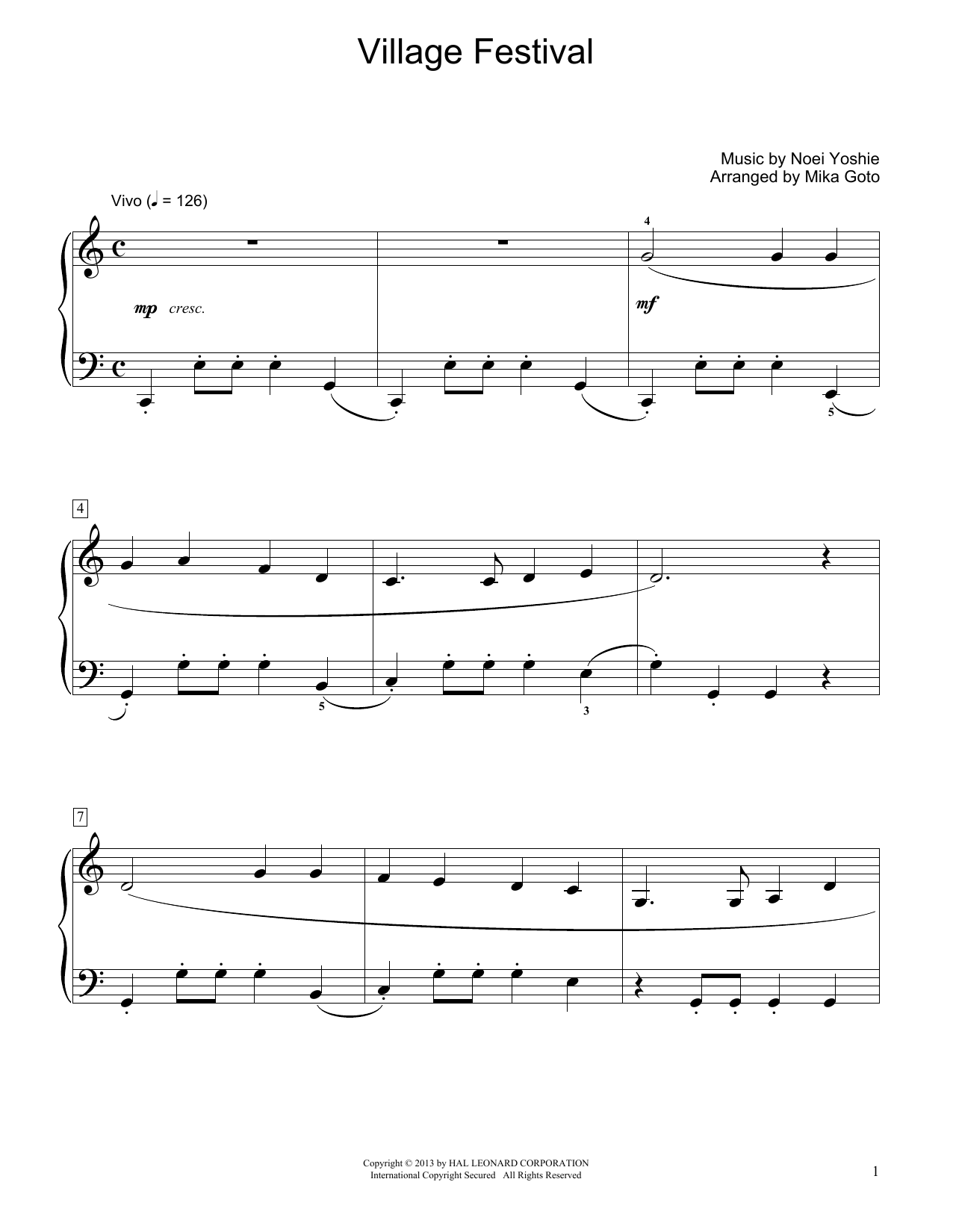 Quick facts Village Festival (arr. Mika Goto) about digital sheet music