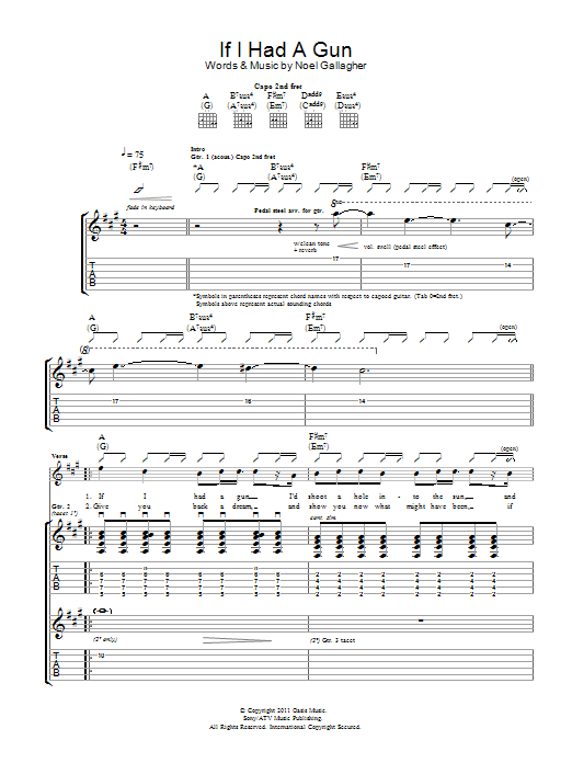 Download or print Noel Gallagher's High Flying Birds If I Had A Gun... sheet music, chords and digital score arranged for Guitar Tab. This Rock score includes 9 page(s).