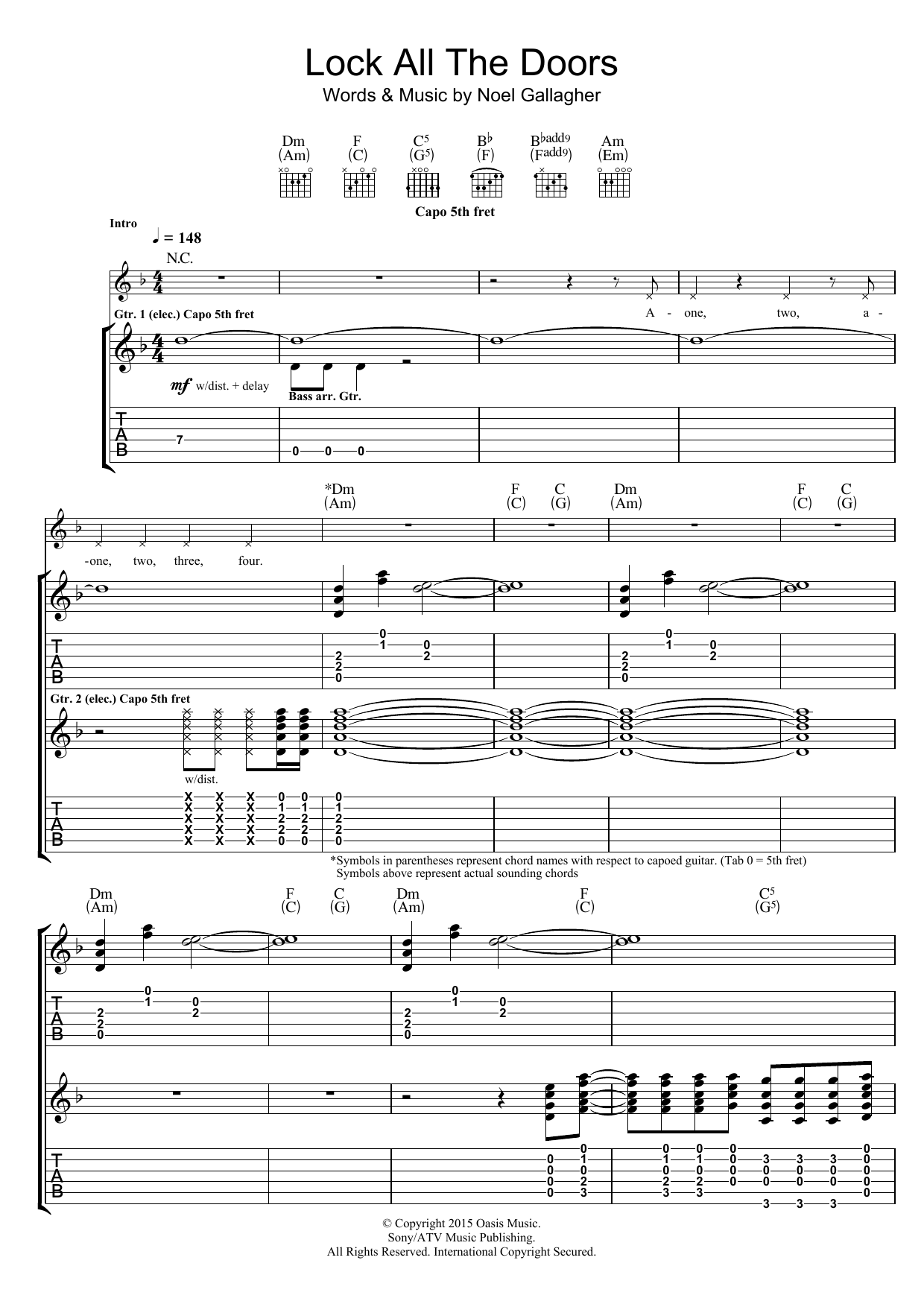 Download or print Noel Gallagher's High Flying Birds Lock All The Doors sheet music, chords and digital score arranged for Guitar Tab. This Rock score includes 8 page(s).