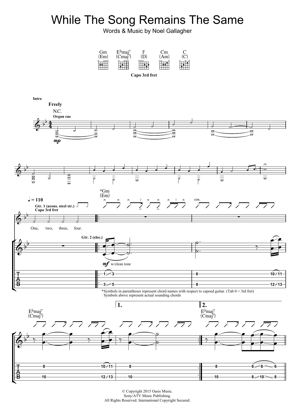 Download or print Noel Gallagher's High Flying Birds While The Song Remains The Same sheet music, chords and digital score arranged for Guitar Tab. This Rock score includes 6 page(s).
