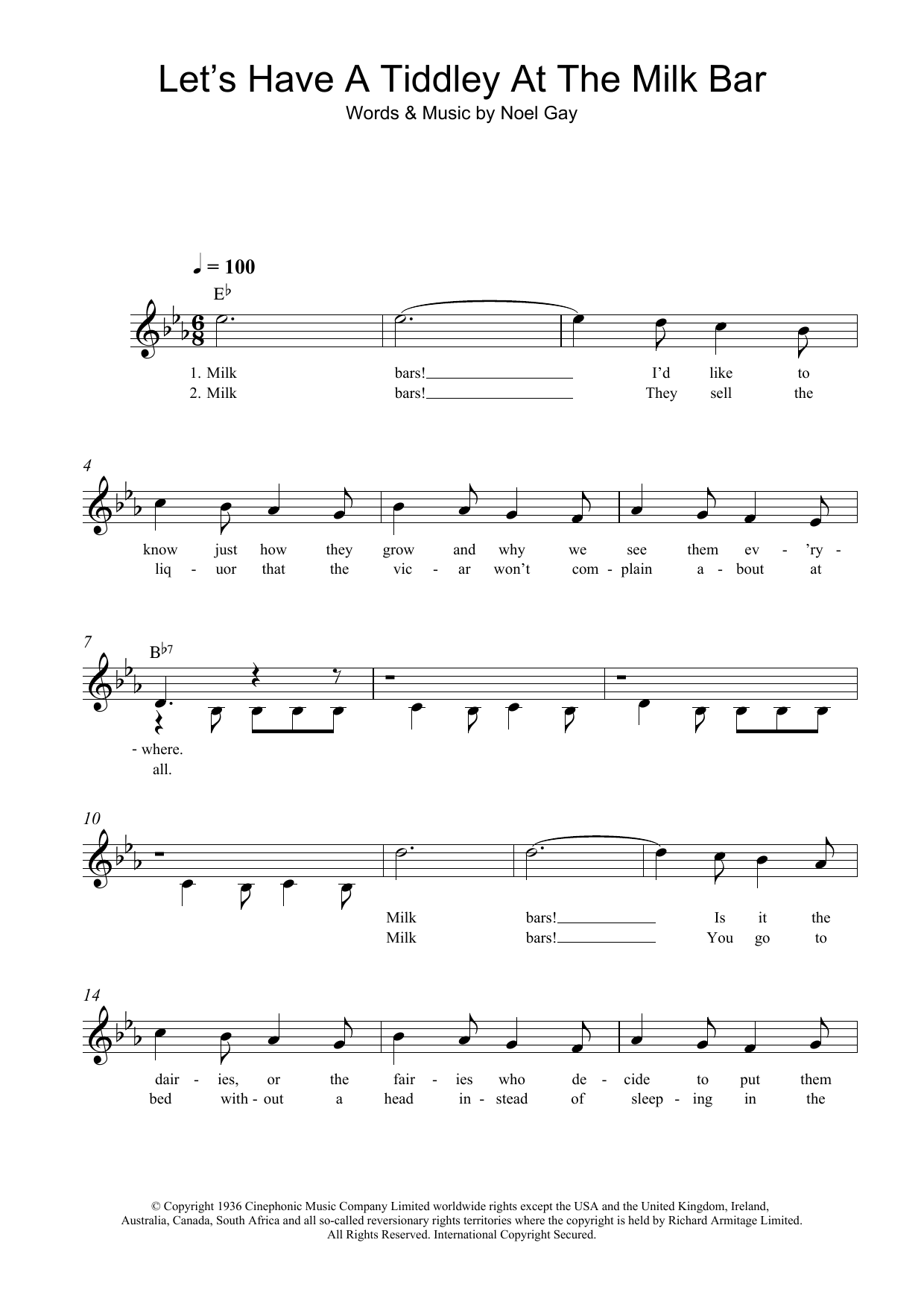 Download or print Noel Gay Let's Have A Tiddley At The Milk Bar sheet music, chords and digital score arranged for Lead Sheet / Fake Book. This Traditional score includes 3 page(s).