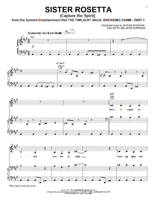Download or print Noisettes Sister Rosetta (Capture The Spirit) sheet music, chords and digital score arranged for Piano, Vocal & Guitar Chords (Right-Hand Melody). This Film/TV score includes 11 page(s).