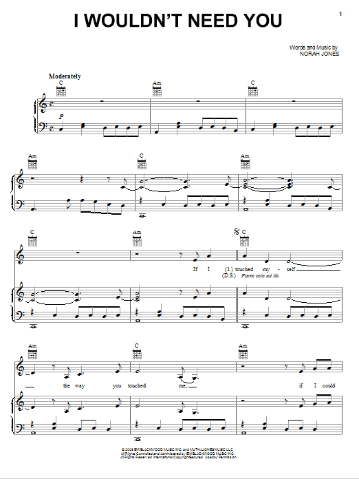 Download or print Norah Jones I Wouldn't Need You sheet music, chords and digital score arranged for Piano, Vocal & Guitar Chords (Right-Hand Melody). This Pop score includes 5 page(s).