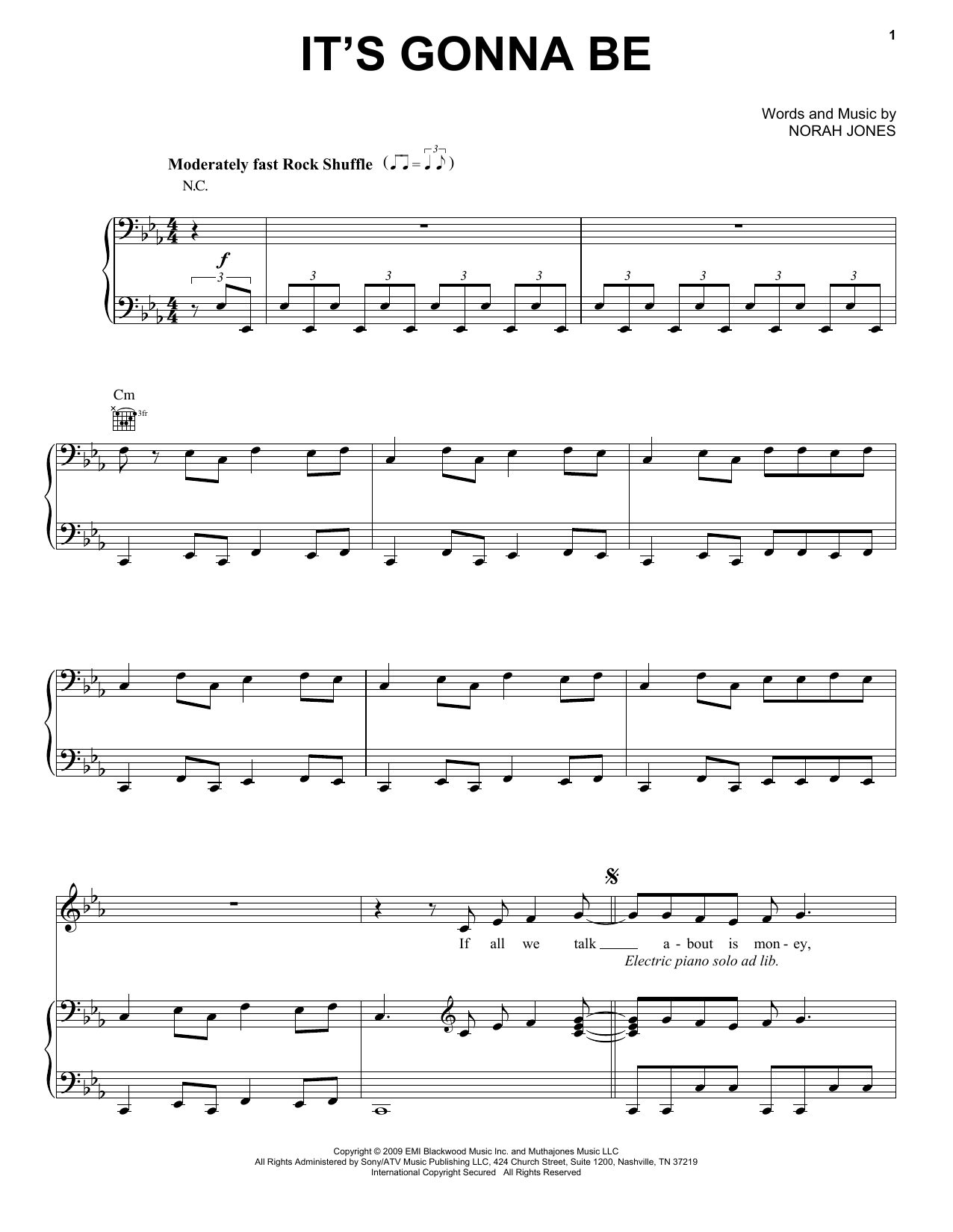 Download or print Norah Jones It's Gonna Be sheet music, chords and digital score arranged for Piano, Vocal & Guitar Chords (Right-Hand Melody). This Pop score includes 7 page(s).