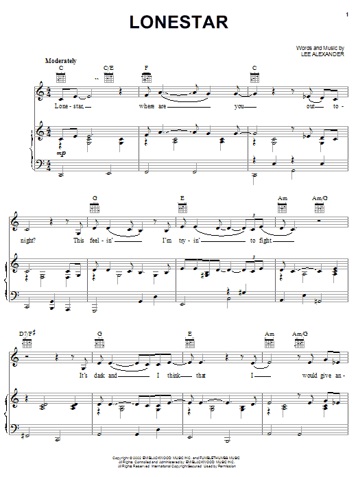 Download or print Norah Jones Lonestar sheet music, chords and digital score arranged for Easy Piano. This Pop score includes 5 page(s).