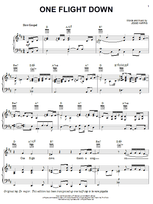 Download or print Norah Jones One Flight Down sheet music, chords and digital score arranged for Easy Piano. This Jazz score includes 3 page(s).