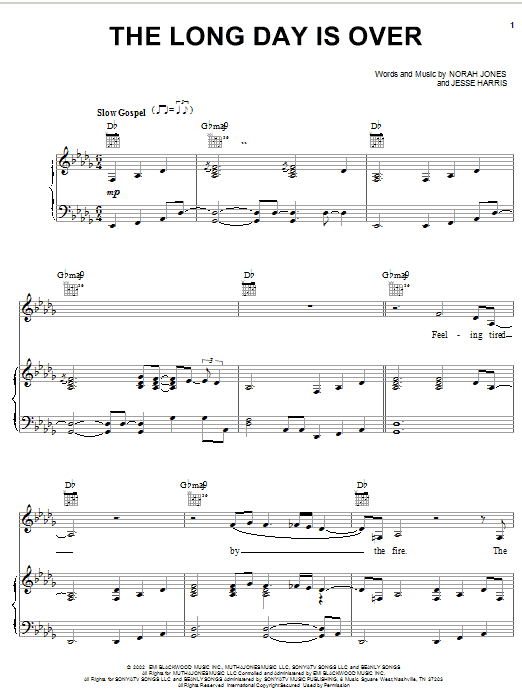 Download or print Norah Jones The Long Day Is Over sheet music, chords and digital score arranged for Easy Piano. This Pop score includes 4 page(s).