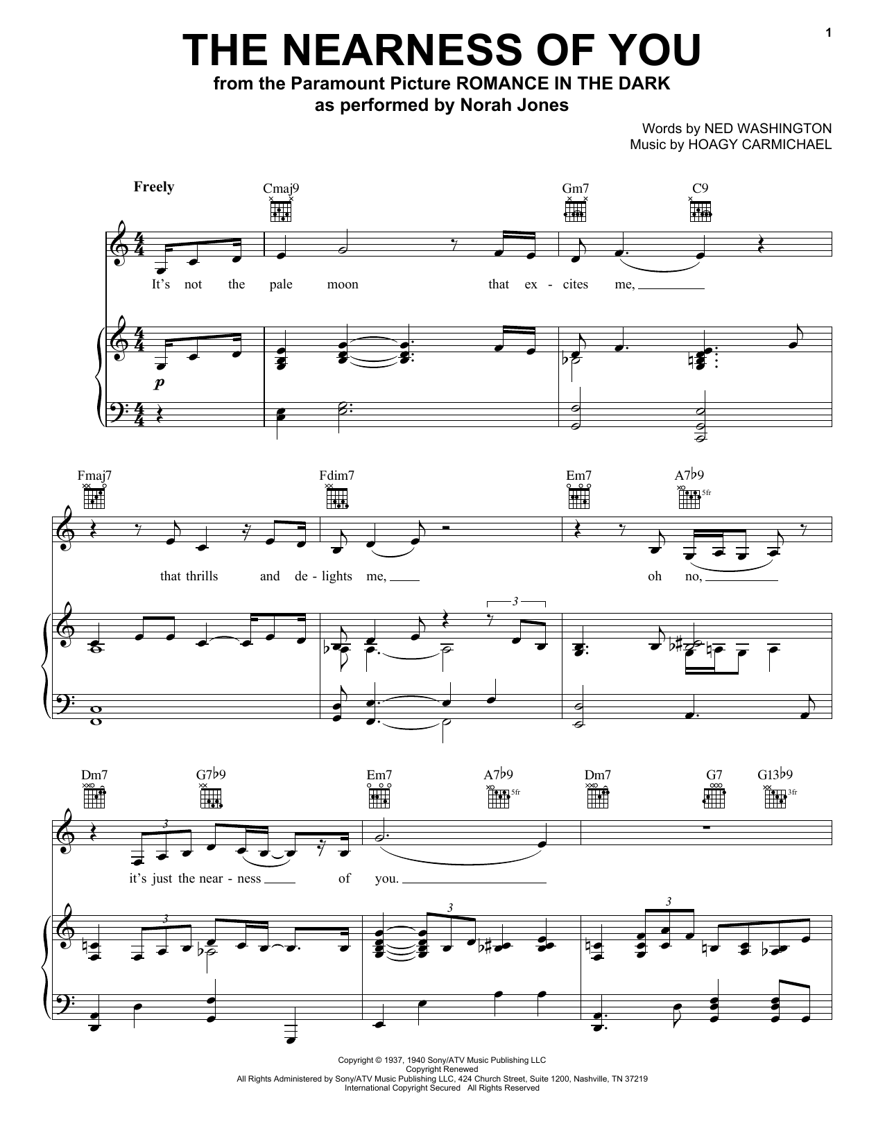 Download or print Norah Jones The Nearness Of You sheet music, chords and digital score arranged for Lead Sheet / Fake Book. This Jazz score includes 2 page(s).