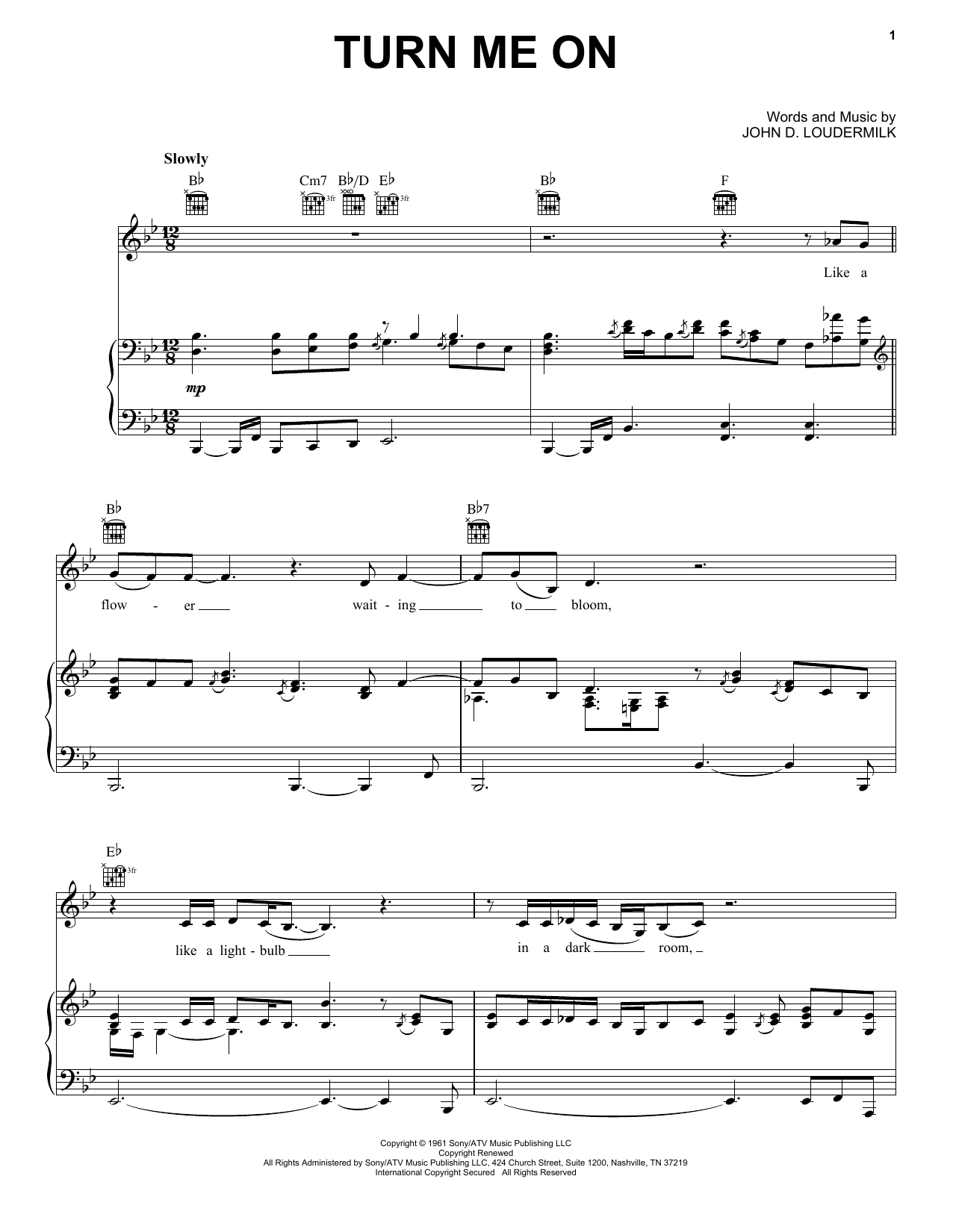 Download or print Norah Jones Turn Me On sheet music, chords and digital score arranged for Easy Piano. This Pop score includes 4 page(s).