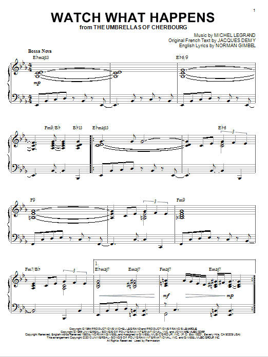 Download or print Norman Gimbel Watch What Happens [Jazz version] (arr. Brent Edstrom) sheet music, chords and digital score arranged for Piano Solo. This Jazz score includes 4 page(s).