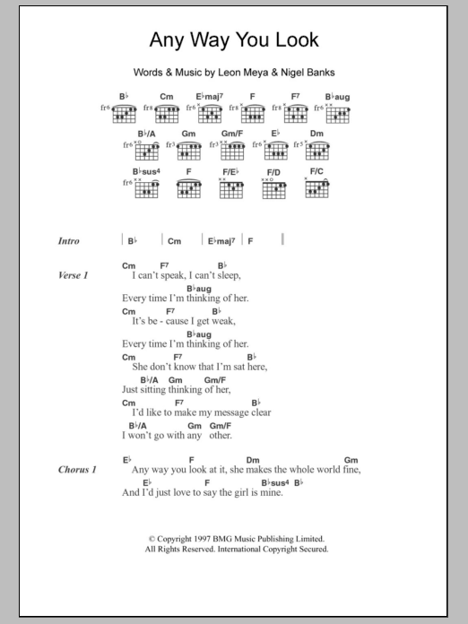 Download or print Northern Uproar Any Way You Look sheet music, chords and digital score arranged for Guitar Chords/Lyrics. This Rock score includes 2 page(s).