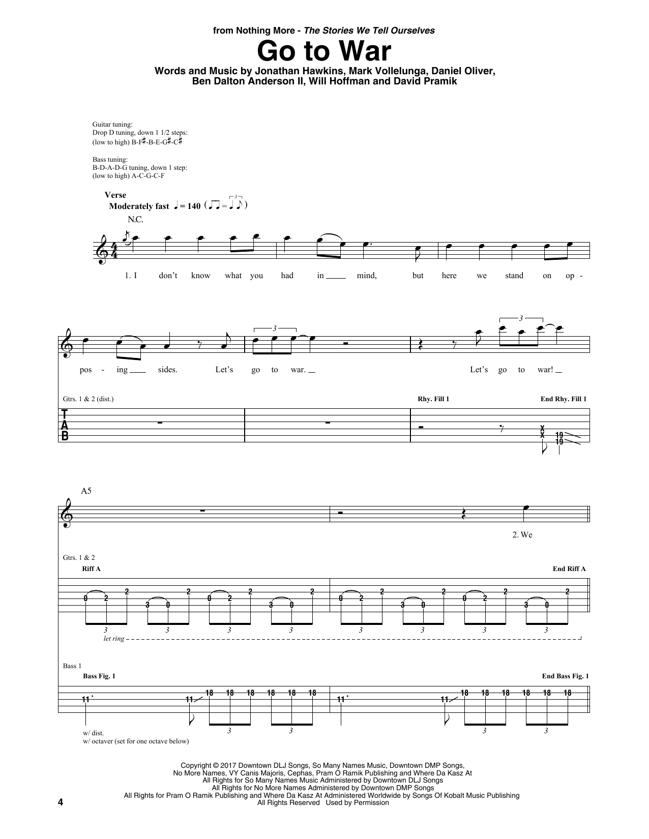 Download or print Nothing More Go To War sheet music, chords and digital score arranged for Guitar Rhythm Tab. This Rock score includes 14 page(s).