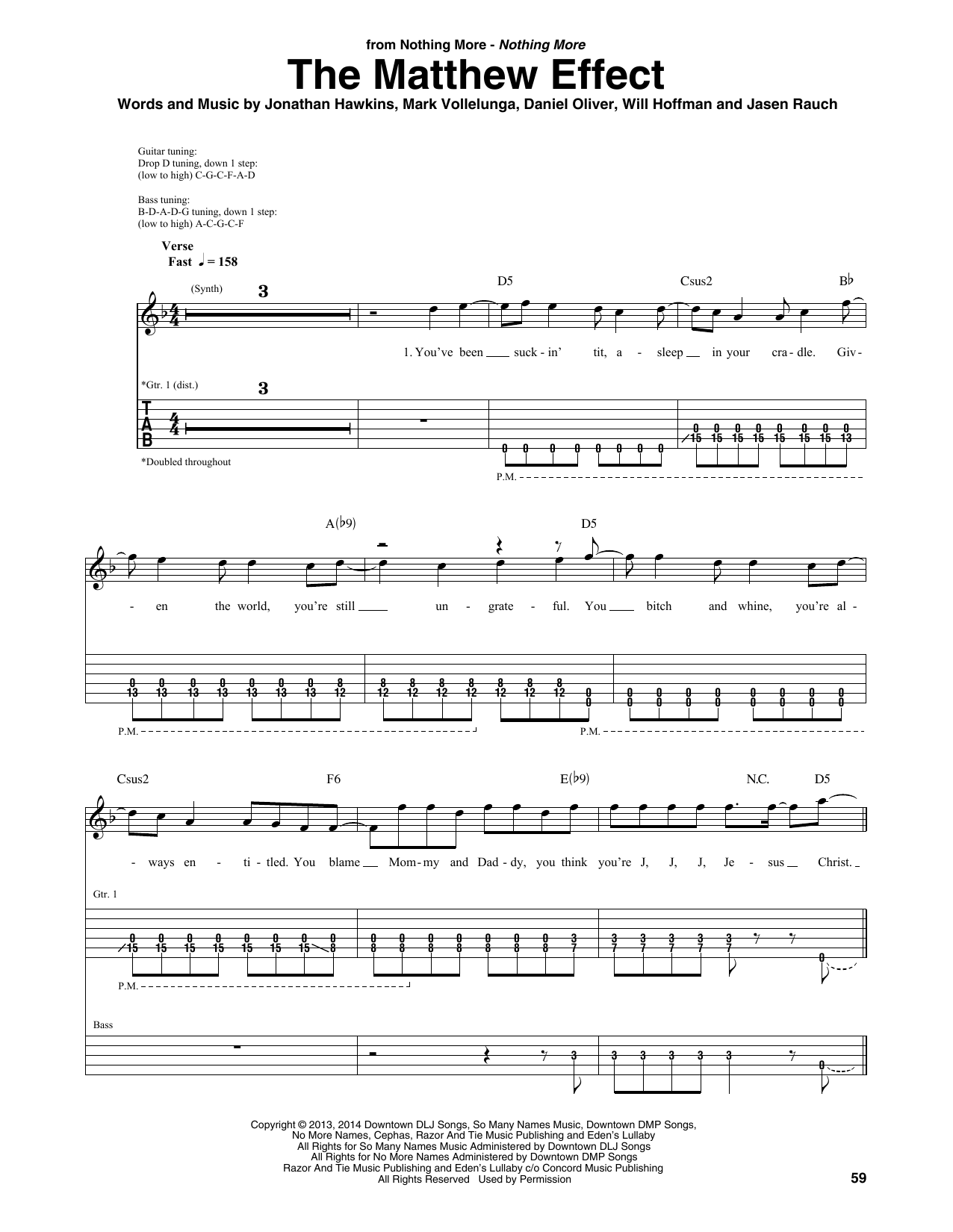 Download or print Nothing More The Matthew Effect sheet music, chords and digital score arranged for Guitar Rhythm Tab. This Rock score includes 12 page(s).