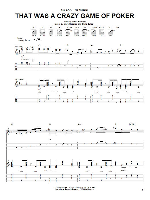Download or print O.A.R. That Was A Crazy Game Of Poker sheet music, chords and digital score arranged for Guitar Tab. This Pop score includes 12 page(s).